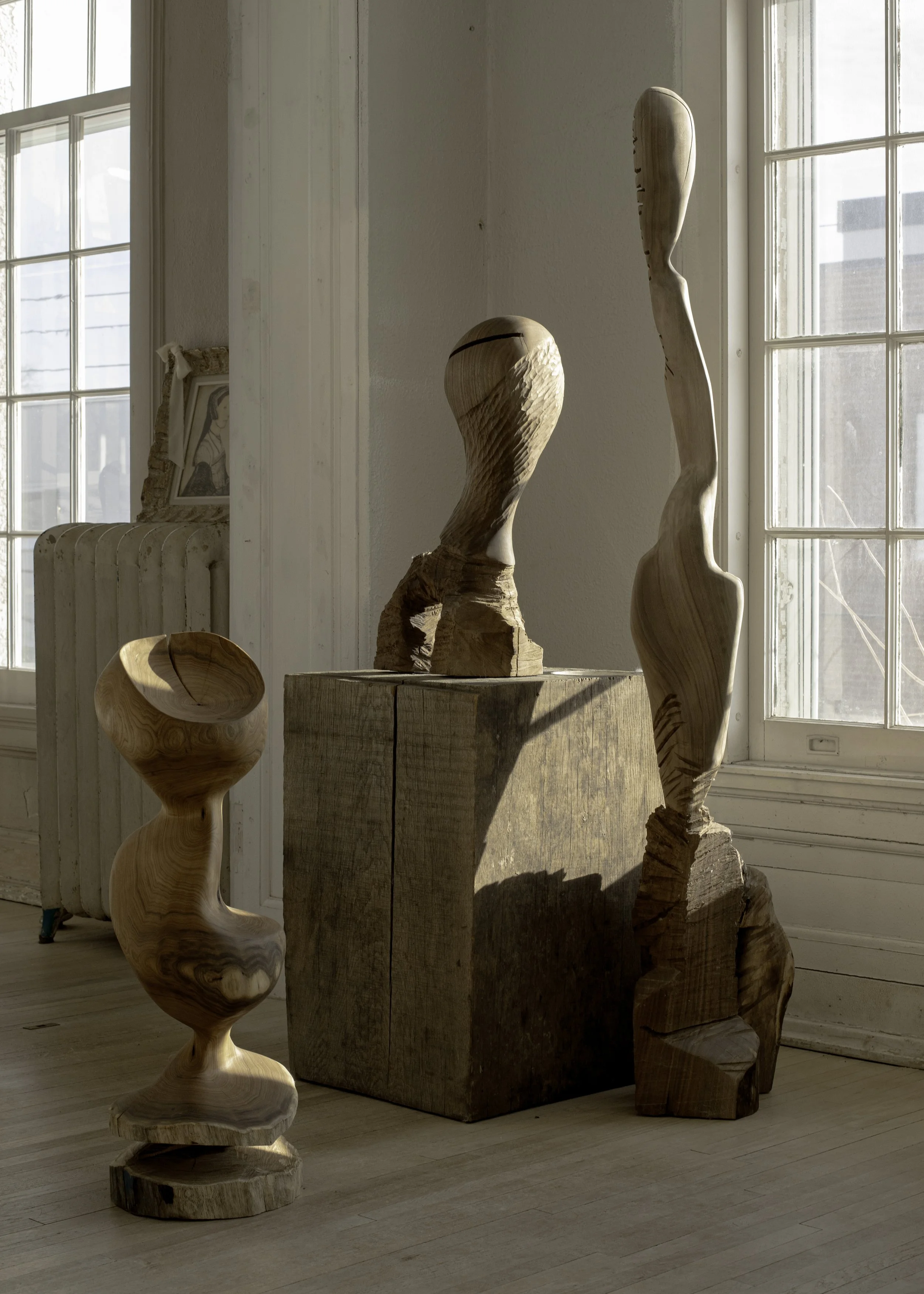 The capsule, entitled Time Is the Feeling of Being Made, is conceived not through fixed concepts but through a process of attunement; an intuitive collaboration between maker, material, and the forces that have acted upon it long before it enters the studio. Each sculpture becomes a marker of that continuum, a distilled moment in the ongoing life of the wood.